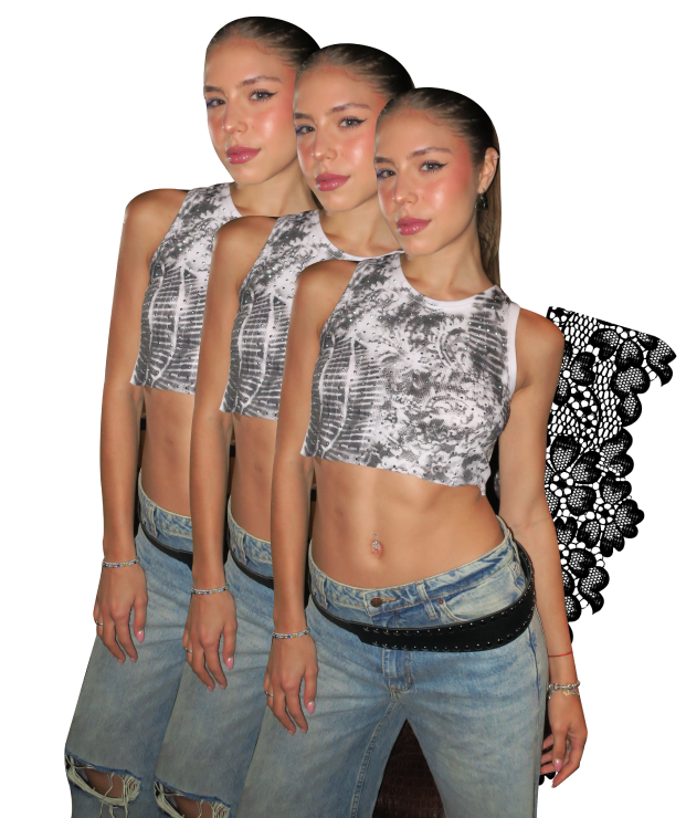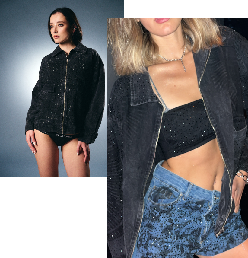 Esta colección está inspirada en el brillo y la magia de la noche, en esa sensación de libertad que sentimos cuando nos dejamos llevar por nuestra autenticidad. Donde intentó capturar ese espíritu en cada detalle: los brillos, el denim y lo artesanal de cada prenda, las cuales nunca serán iguales. En «Renaissance», se mezclan influencias del glamour clásico de ONA SAEZ con la modernidad más audaz de LS, creando piezas que invitan a ser libres y a brillar con luz propia.